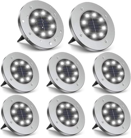 8led פאנל סולארי מופעל ספייק קרקע קרקע פנסים נירוסטה גוף חם אור לבן חם אור לבן